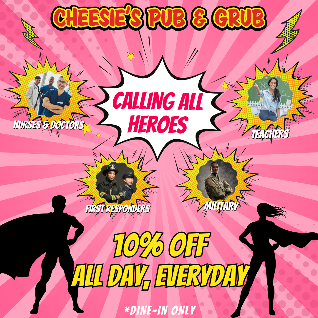 Prizes: $100 Gift Card, to be redeemed at a later date; Cheesie’s T-Shirt, A Free High Five,